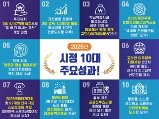 제천시가 2025년 한 해를 마무리하며 ‘역동적이고 새로운 경제도시 제천’ 실현을 목표로 13만 시민과 1,200여 공직자의 열정과 노력을 바탕으로 거둔 올해의 10대 성과를 선정해 발표했다.