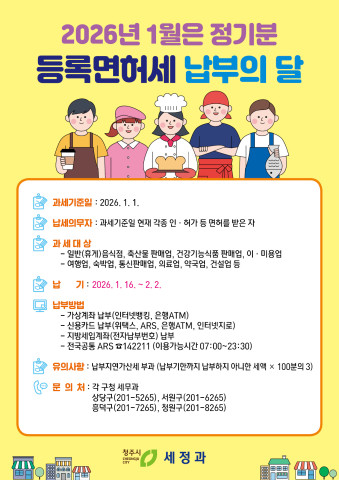 청주시, 1월 정기분 등록면허세 12만여건 부과