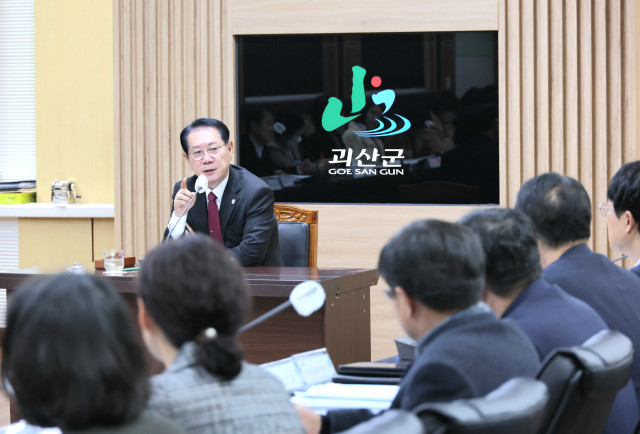 충북 괴산군(군수 송인헌)은 8일 확대간부회의에서 송인헌 군수가 2026년도 예산안 심사에 대비해 각 부서에 사업 타당성 설명과 예산 집행 준비를 철저히 할 것을 주문했다고 밝혔다.