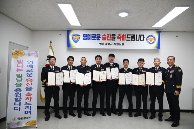 양윤교 영동경찰서장은 “영예로운 승진을 축하하며 경감 계급은 더 많은 책임이 뒤따르는 만큼 앞으로도 영동경찰의 발전을 위해 노력을 해달라”고 당부했다.