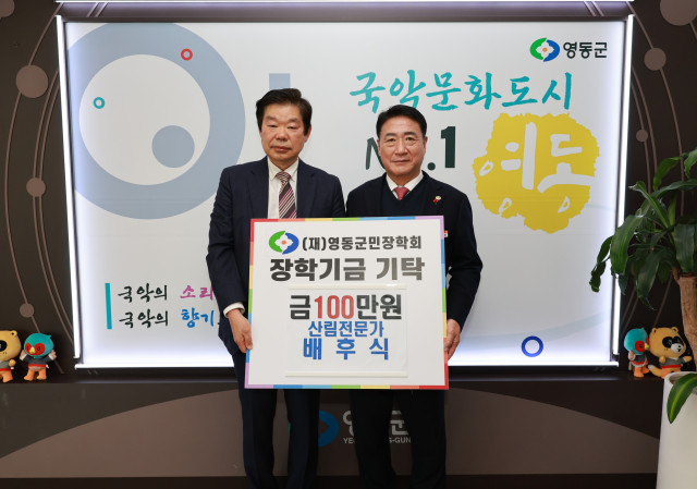 영동군 심천면 기호리 배후식 씨, 산림청장 표창 수상 이어 영동군장학회에 장학금 100만 원 기탁