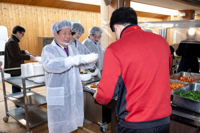 김창규 제천시장 , 설날 맞아 직원들에 떡만둣국 배식봉사
