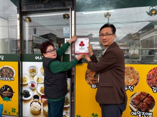 충북 영동군 용산면 지역사회보장협의체(위원장 한봉희)는 19일, ‘행운식당’이 충북 사회복지공동모금회 착한가게 캠페인에 동참함에 따라 착한가게 현판식을 개최했다고 밝혔다.