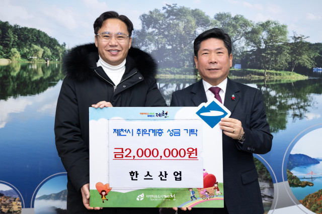 한스산업, 제천시 취약계층을 위한 성금 200만원 기탁