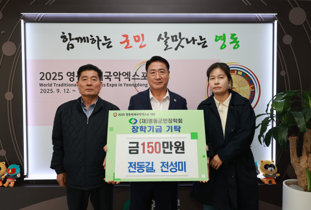 영동군, 전동길·전성미 부녀, 영동군민장학회에 장학금 150만 원 기탁