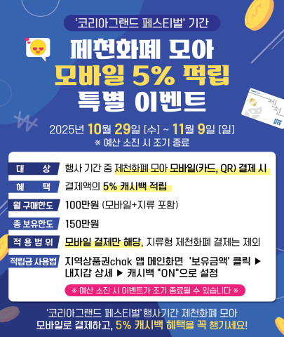 제천시, 제천화폐 모아 모바일_ 적립 특별할인 이벤트
