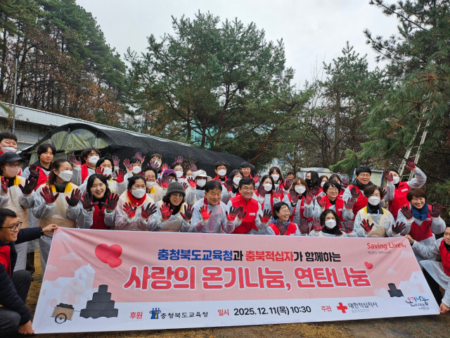 대한적십자사 충북지사가 충청북도교육청(윤건영 교육감 참여)과 협력하여 청주시 일대 취약계층 12세대에 연탄 5,700장을 전달하는 '온기나눔, 연탄나눔' 봉사활동을 실시했습니다